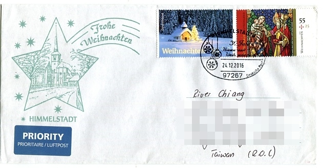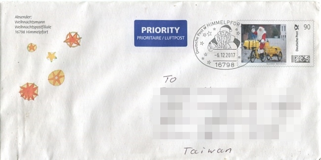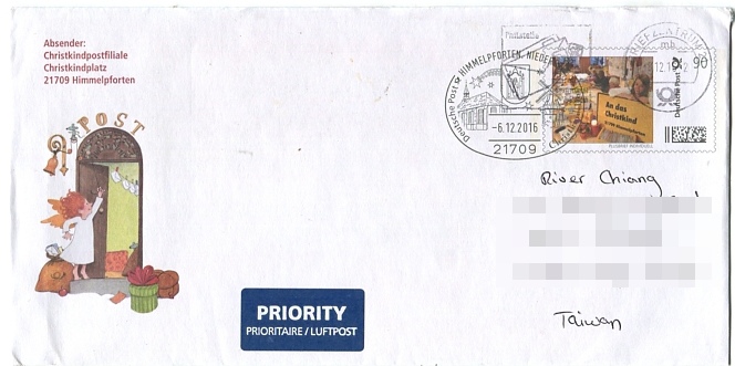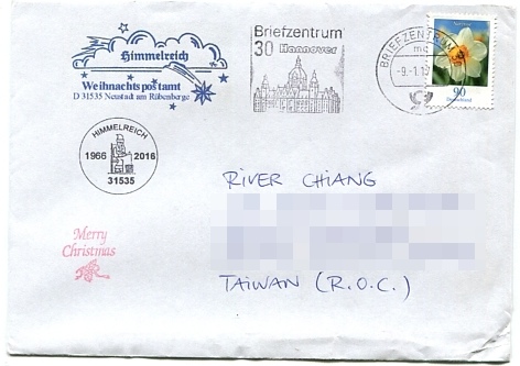 嚴格來說這是我第一封確定從德國31535Himmelreich耶誕郵局來的回信。